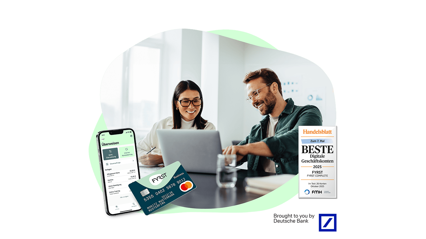 Eröffnen Sie Ihr günstiges digitales Geschäftskonto bei FYRST ab 0 € im Monat – die ideale Basis für Ihr Business. Wählen Sie aus unserem kostenlosen Modell FYRST BASE ab 0 € bis hin zum FYRST COMPLETE für Vielüberweiser das passende Firmenkonto für Ihre Bedürfnisse. Als